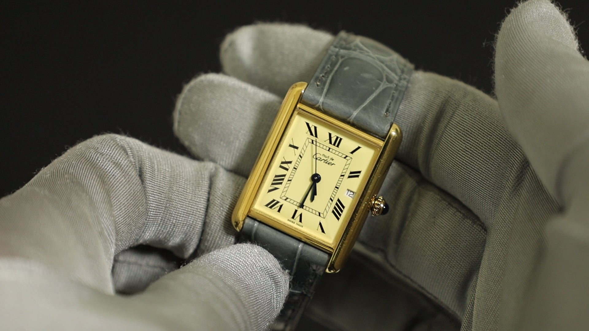 カルティエ マストタンク GM(XL) W1017454 / 2413 クォーツ Cal.687 SV925 純正革ベルト 純正Dバックル(GP)アイボリーローマン文字盤(SWISS MADE表記) 箱 冊子 保証書 (2004年) オーバーホール済み