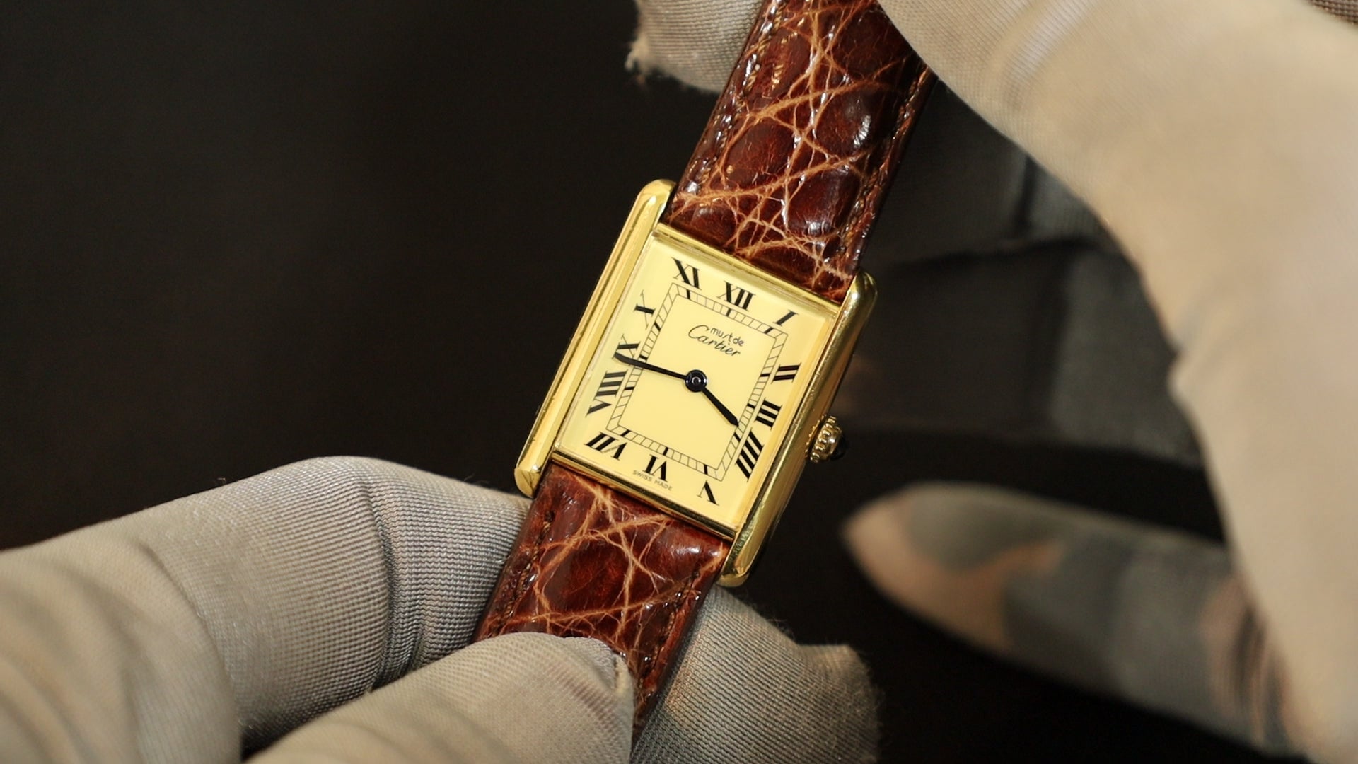 カルティエ マストタンク LM 590005 クォーツ 革 純正尾錠(GP) アイボリーローマン文字盤 カルティエブティックにてコンプリートサービス(フルメンテナンス)済み 新品仕上げ済み