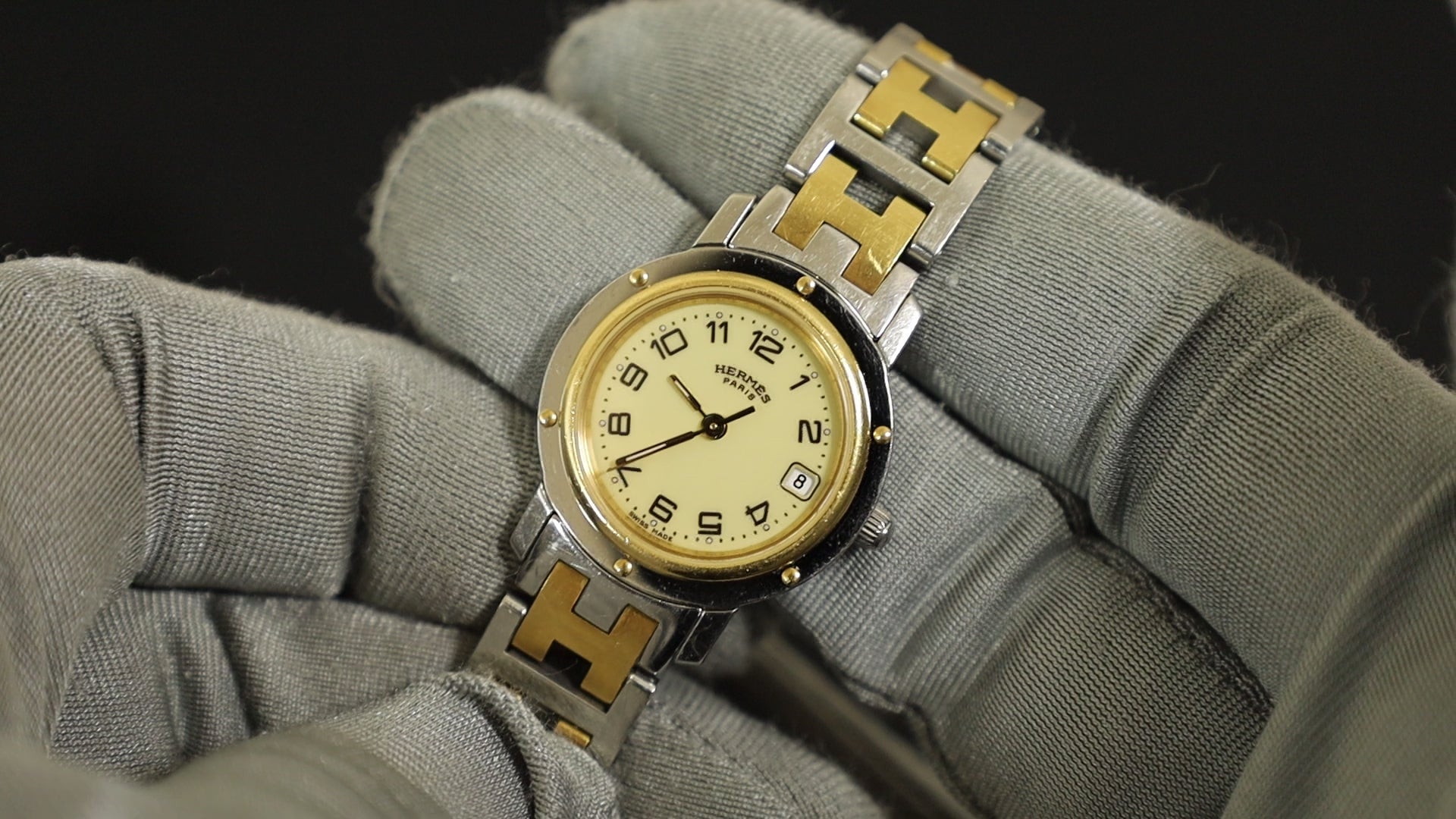 エルメス クリッパー CL4.220 クォーツ SS/GP SS/GP アイボリー文字盤 30mm 箱 冊子 保証書 ※オーバーホール済み