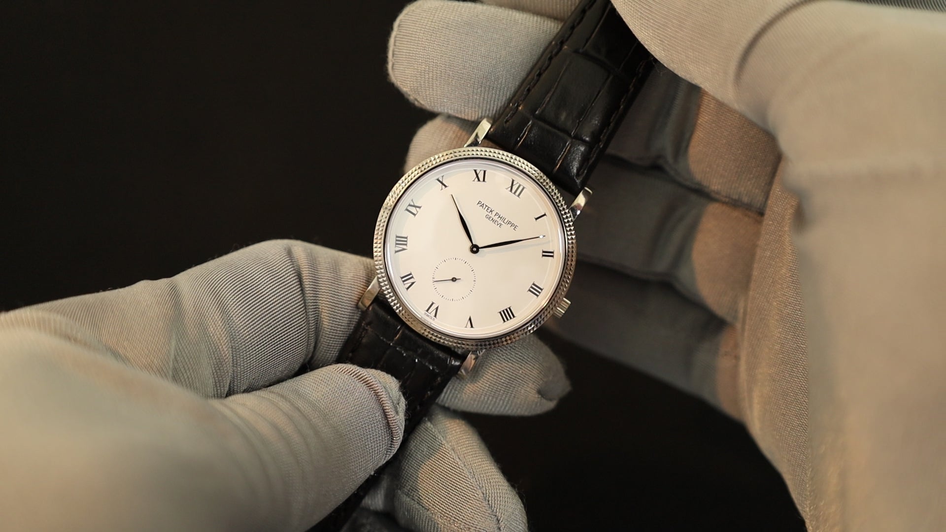 パテック・フィリップ カラトラバ 3919G-001 手巻き Cal.215 750 革 純正尾錠(750) ホワイトローマン文字盤 箱 ケース(劣化) アーカイヴ(2017年発行/1992年購入品)修理明細(個人名記載あり)純正ベルト付き(使用感あり) オーバーホール済み