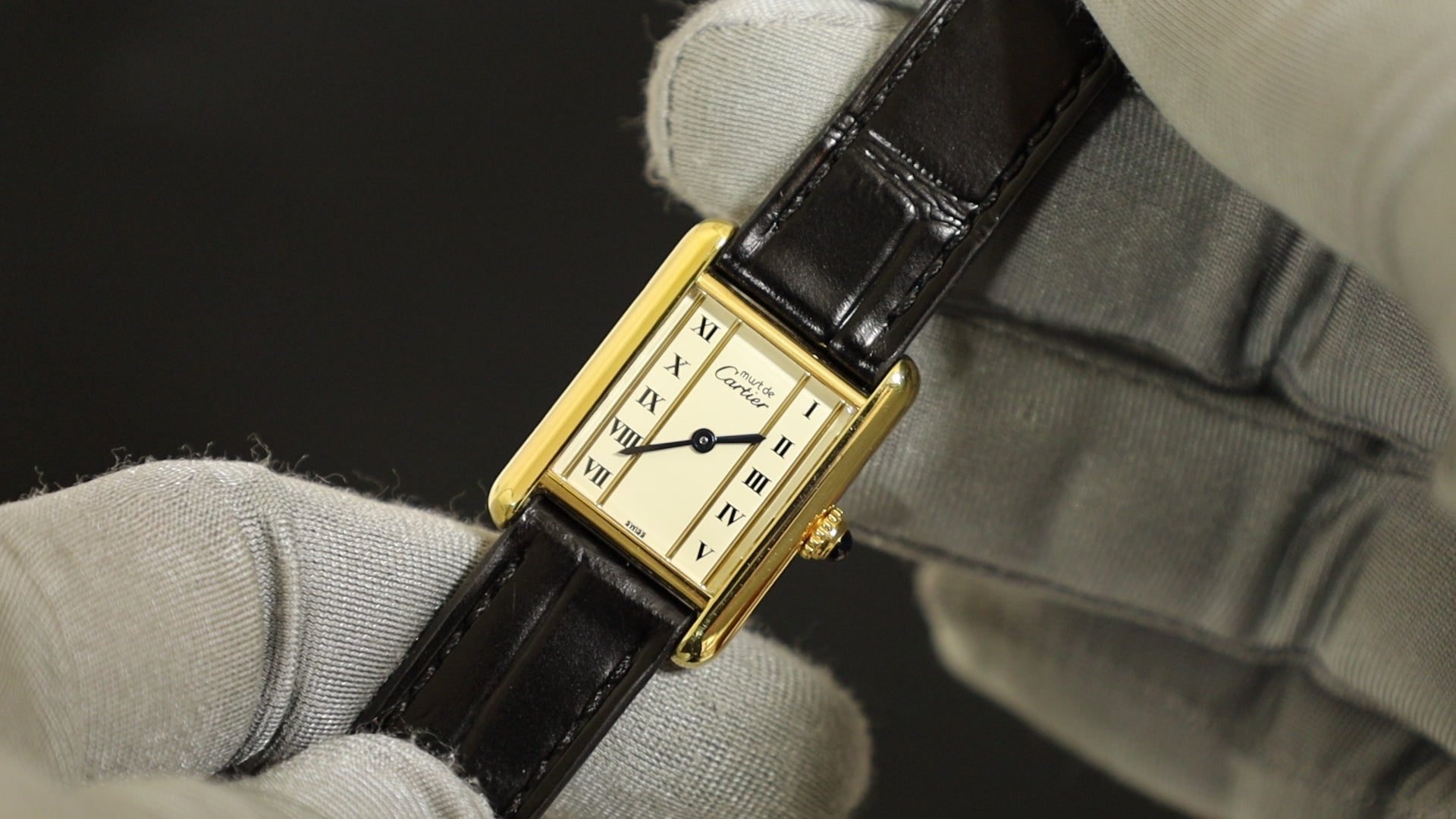 カルティエ マストタンク SM 5057001 クォーツ Cal.057 SV925 革 純正尾錠(GP)ストレートローマン文字盤(SWISS表記)オーバーホール済み