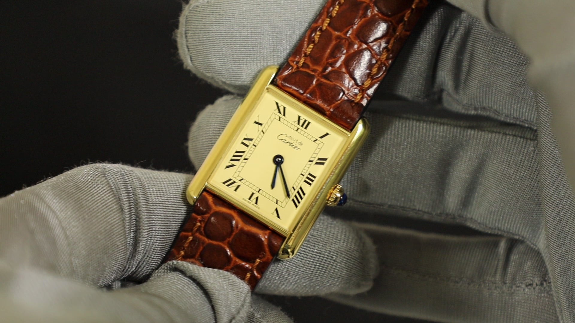 カルティエ マストタンク LM 590005 クォーツ Cal.690 SV925 革 純正尾錠(GP)アイボリーローマン文字盤(SWISS MADE表記) オーバーホール済み 新品仕上げ済み