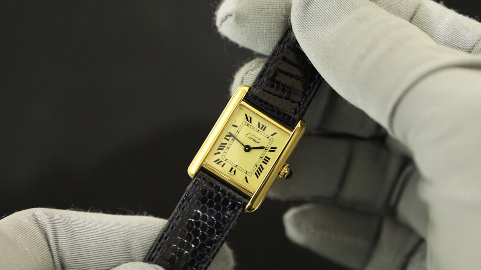 カルティエ マストタンク SM W1003153 / 5057001 クォーツ Cal.057 SV925 革 純正尾錠(GP)アイボリーローマン文字盤 オーバーホール済み 新品仕上げ済み