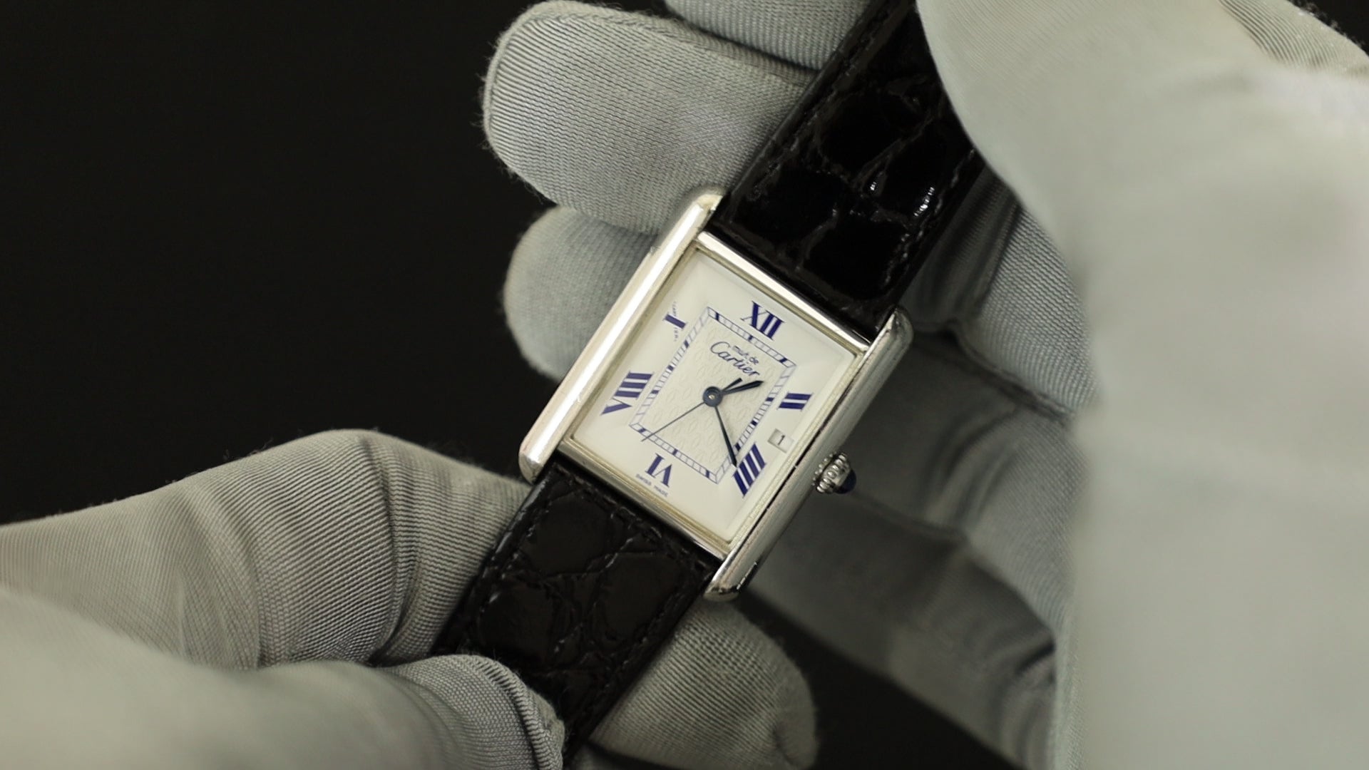 カルティエ マストタンク GM(XL) W1014154 / 2414 クォーツ Cal.87 SV925 革 純正尾錠(SS)ホワイト飛びローマン文字盤 オーバーホール済み