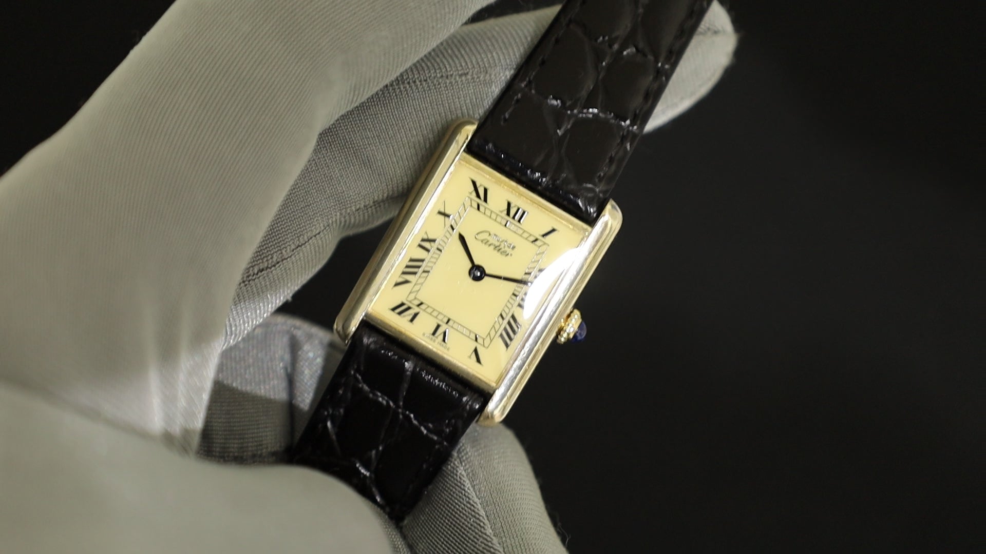 カルティエ マストタンク LM 手巻き Cal.- SV925 革 純正尾錠(GP) アイボリーローマン文字盤 カルティエブティックにてコンプリートサービス済み