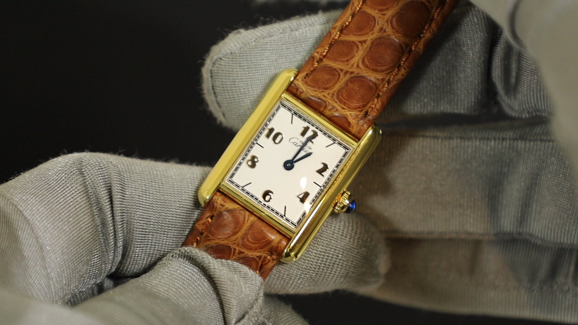 カルティエ マストタンク SM 1613 クォーツ Cal.057 SV925 革 純正Dバックル(GP) 飛びアラビアCC文字盤(SWISS表記) オーバーホール 新品仕上げ済み