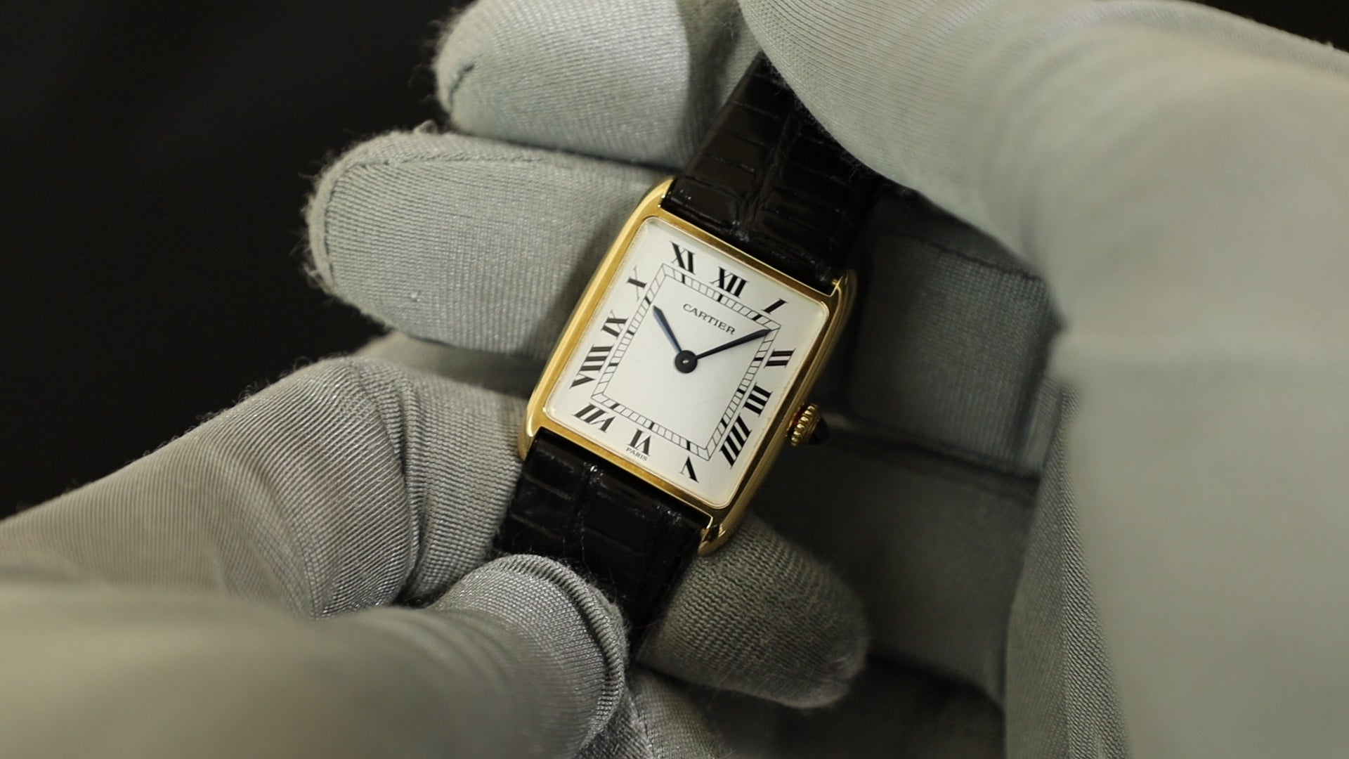 カルティエ タンク アロンディ タンク エリプス LM 81722553 / 96041 手巻き Cal.21(フレデリック・ピゲ)750YG 革 純正尾錠(GP) ホワイトローマン文字盤(PARIS表記) 国際永久保証書(1983年) オーバーホール済み