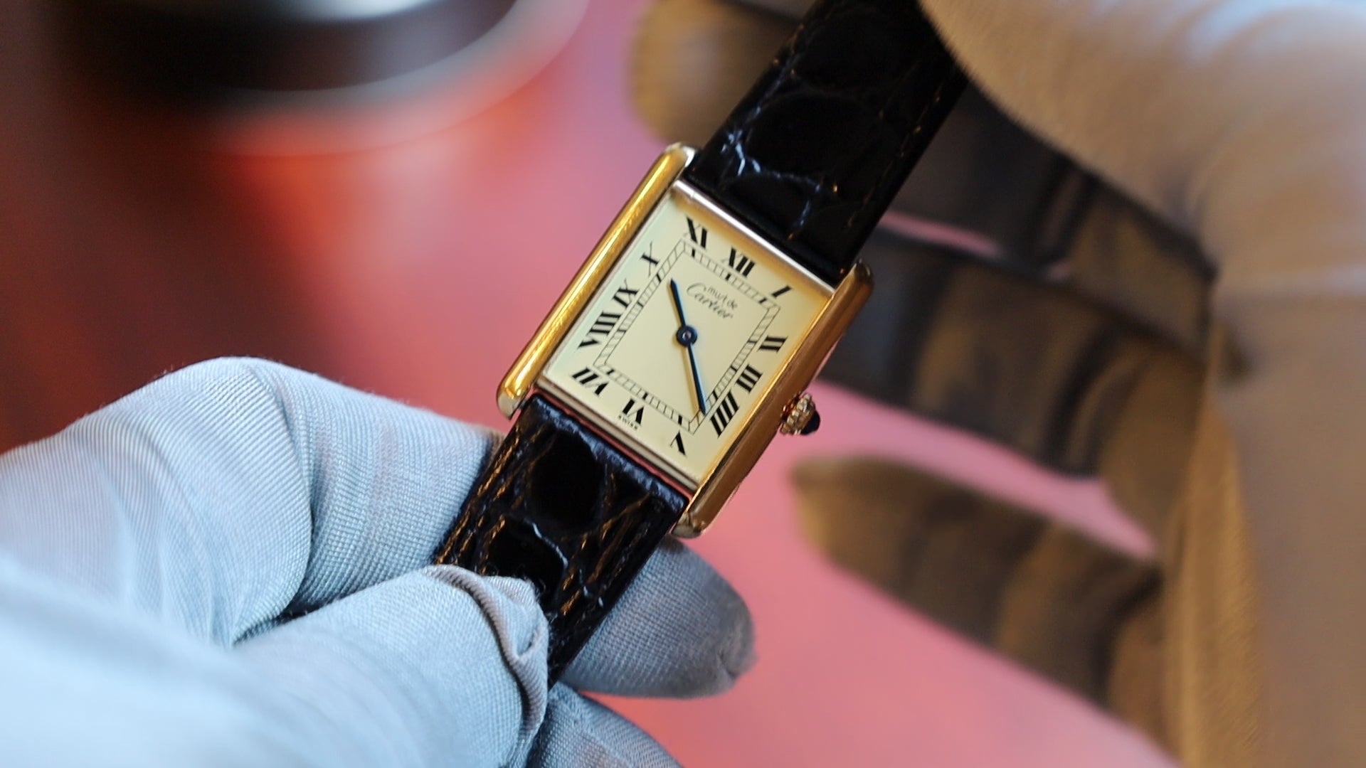 カルティエ マストタンク LM 590005 クォーツ Cal.90 SV925 革 純正尾錠(GP) アイボリーローマン文字盤 オーバーホール済み