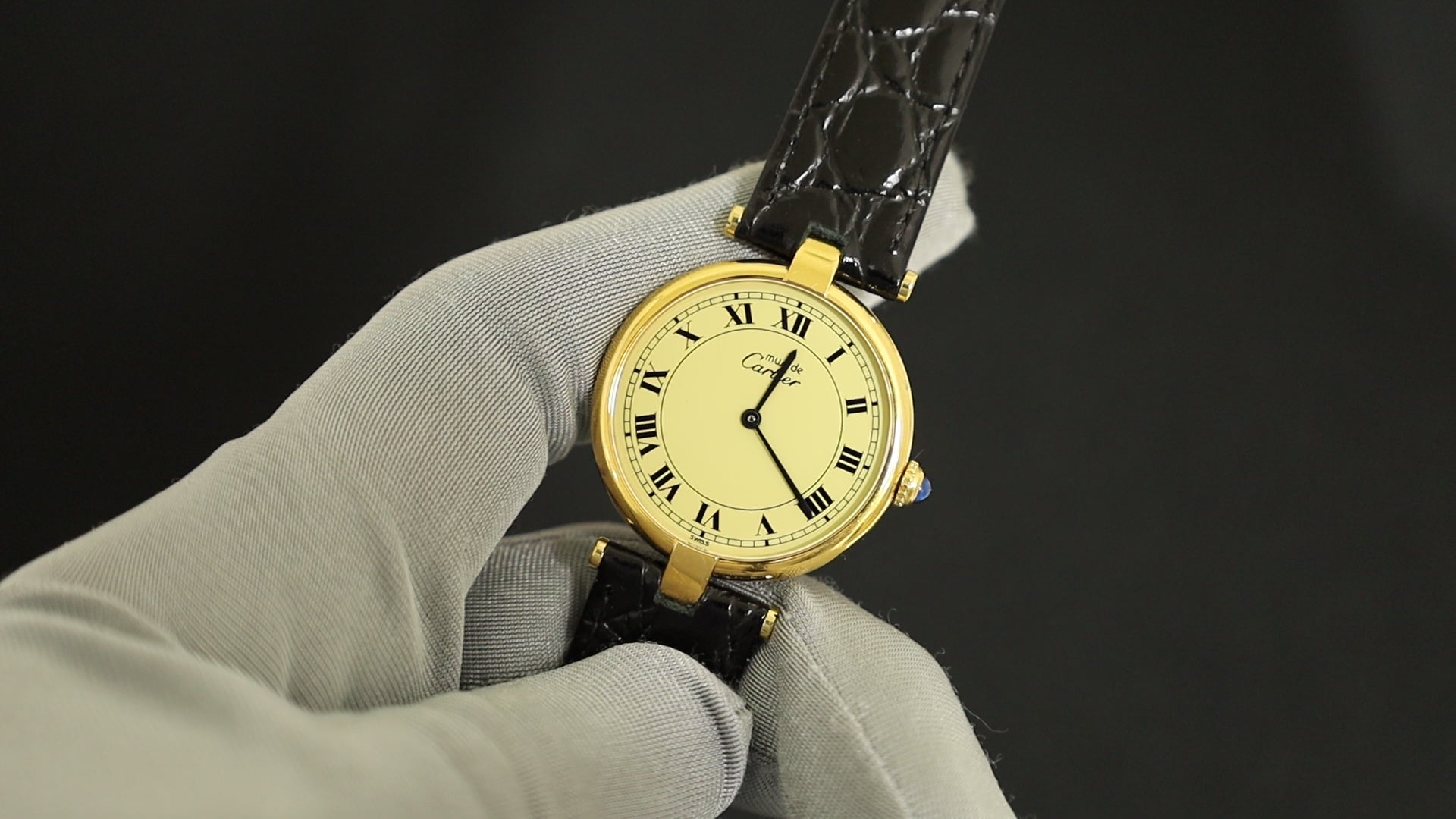 カルティエ マスト ヴァンドーム VLC LM 590003 クォーツ Cal.90 SV925 革 純正尾錠(GP) アイボリーローマン文字盤 オーバーホール済み