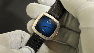 ロレックス チェリーニ 4084 手巻き Cal.1600 革 750WG 純正ピンバックル(SS)ネイビー文字盤 41番台(1974年)オーバーホール済み