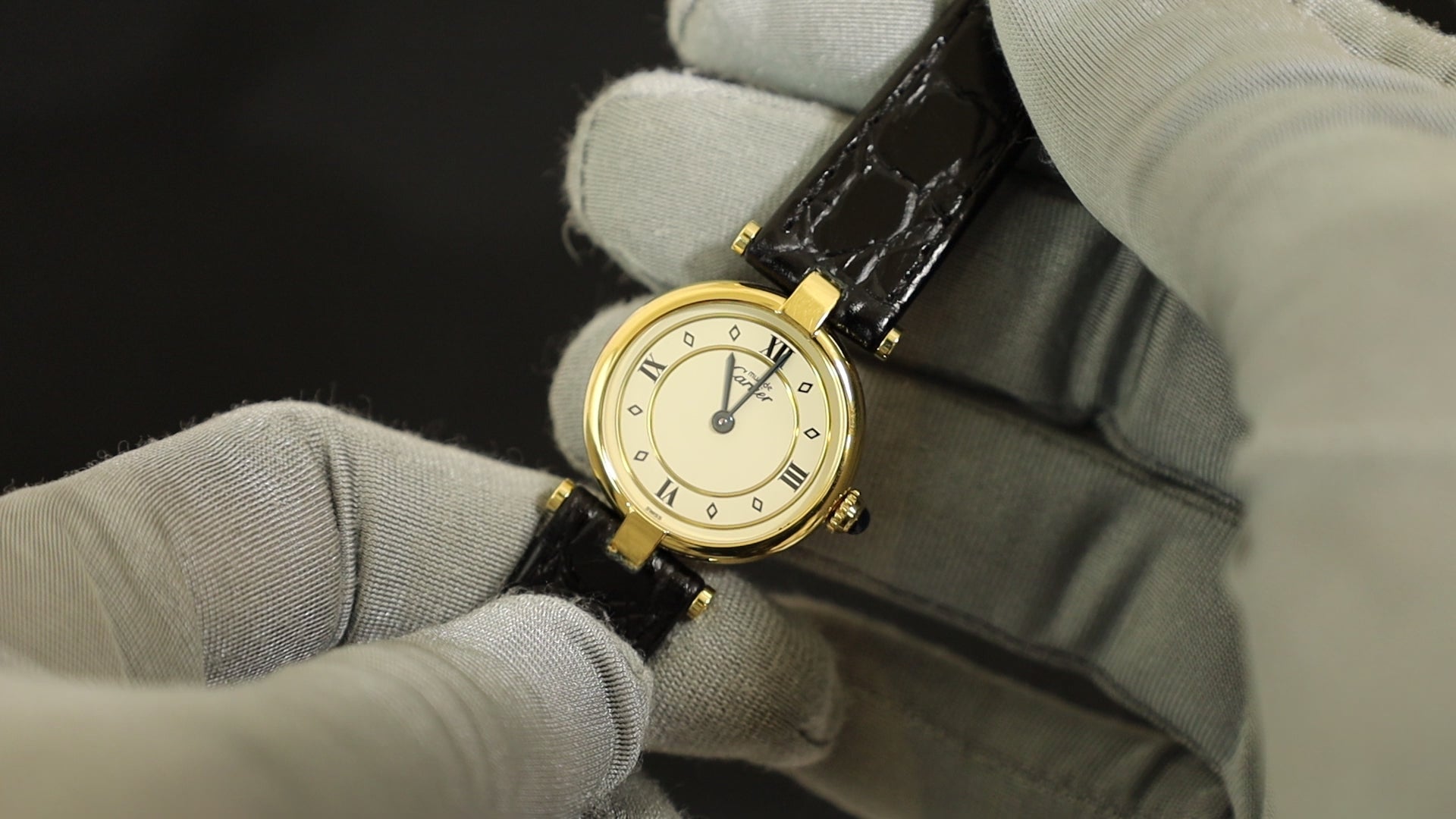 カルティエ マスト ヴァンドーム VLC SM W1002353 / 1815 クォーツ Cal.90 SV925 革 純正尾錠(GP)アイボリー4点ローマン文字盤 1980年代半ば~1994年頃 箱 冊子 保証書(1997年)オーバーホール済み